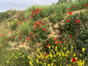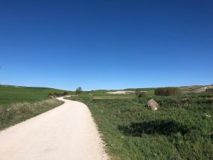 The Meseta – Today was the beginning of 6 days walking through the Meseta (plateau). The Meseta is one long rolling path through endless wheat fields. It was a 32km (5 ½ hour) walk on a windy, sunny day in the high 40’s – perfect walking weather. Helped by the fact that for the first time the wind was at our backs – I’ll take any help I can get. The whole day was kinda boring in a pleasant kind of way. I will confess that I did catch myself talking to myself the last hour – out loud.