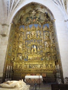 As I wondered through the cathedral today it became very clear that the most common theme in the windows and other pieces of art is the relationship between Jesus and his mom – from the beginning of his life until the end. They even have a rather uncommon statue of Mary pregnant. Throughout Spain a common theme in sacred art is La Virgin De La Leche or The Virgin of the Milk. There are statues, reliefs and panting everywhere (especially in Burgos) of the young mother Mary nursing her first born. Unlike so much Spanish art the expressions of the people in these works is almost always very sweet and tended, with Mary and the baby Jesus looking directly into each other’s eyes. They can be quite moving.